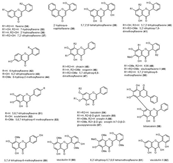 Most natural products with GABAergic activity have been reported from the class of flavones, with 29 compounds isolated from Scutellaria baicalensis alone (Figure 3) [41,42].