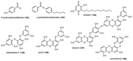 This subsection contains simple and condensed phenylpropanes as well as one kavalactone (Figure 7).