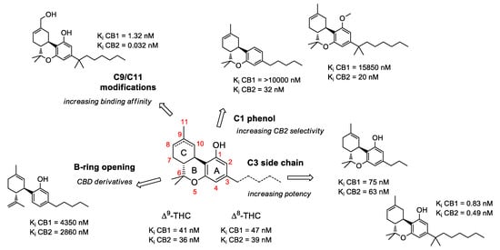 2.1. Structure-Activity Relationship (SAR) of Cannabis-Derived Compounds for the Cannabinoid Receptors