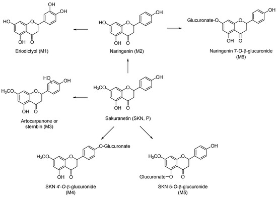 Jeong H, Lee J, Kim S, Yeo YY, So H, Wu H, Song YS, Jang C-Y, Kim H-D, Kim MJ, et al. Hepatic Metabolism of Sakuranetin and Its Modulating Effects on Cytochrome P450s and UDP-Glucuronosyltransferases. Molecules. 2018; 23(7):1542. https://doi.org/10.3390/molecules23071542