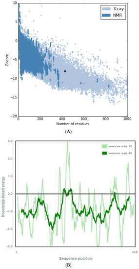 - Wiederstein, M.; Sippl, M.J. ProSA-web: Interactive web service for the recognition of errors in three-dimensional structures of proteins. Nucleic Acids Res. 2007, 35, W407–W410. [Google Scholar] [CrossRef] [PubMed]