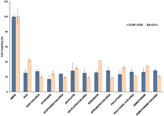 Anti-proliferative assay results for C20-(HR)4 with different anticancer drugs.
