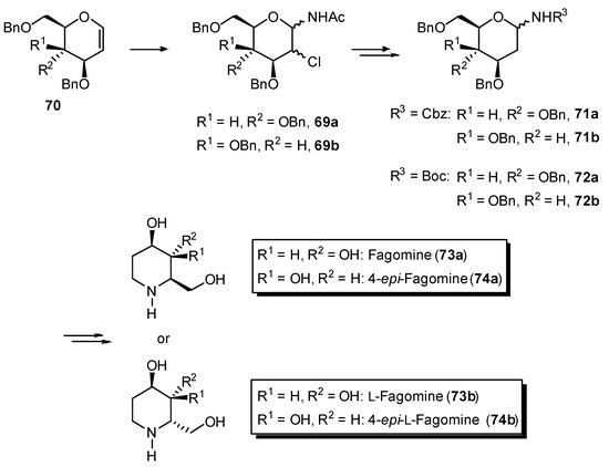 - Kumari, N.; Reddy, B.G.; Vankar, Y.D. Efficient and Stereoselective Syntheses of d- and l-Fagomines and Their Analogues. Eur. J. Org. Chem. 2009, 160–169. [Google Scholar] [CrossRef]