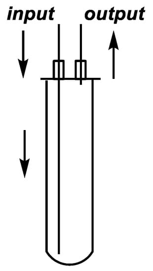 In the first case, the alcoholysis of dimethyl H-phosphonate (DMP) (1) with n-butanol was investigated in the absence of any catalyst, in a CEM® (Matthews, NC, USA) MW reactor equipped with a commercially available CEM® continuous flow cell (Figure 1 and Figure 2). The mixture of DMP (1) and a 25-fold excess of n-butanol was fed into the reactor by an HPLC pump at a flow rate of 0.1–1.4 mL/min (corresponding to residence times of 60–5 min, respectively). The temperature was monitored and controlled by an IR sensor. The mixture leaving the reactor was cooled down using a spiral-like cooler and was passed through a back pressure regulator operating at 250 psi. Consecutive fractions of the leaving mixture were analyzed by GC measurements in order to determine the composition and to identify the stationary operation.