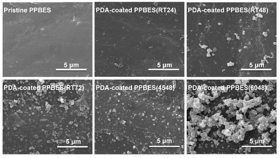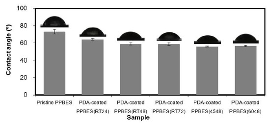 | PDA-coated PPBES(4548) | 56.0 ± 0.5 | 52.7 ± 1.6 | 45.9 | 22.0 | 23.9 |
