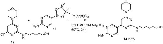 3.1.6. 6-((2′-Amino-6-morpholino-[4,5′-bipyrimidin]-2-yl)amino)hexan-1-ol (14)