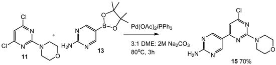 Scheme 4. Cross-coupling of dichloromorpholinopyrimidine (11).