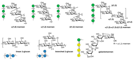 - Nitz, M.; Ling, C.-C.; Otter, A.; Cutler, J.E.; Bundle, D.R. The unique solution structure and immunochemistry of thecandida albicans β-1,2-mannopyranan cell wall antigens. J. Biol. Chem. 2002, 277, 3440–3446. [Google Scholar] [CrossRef] [PubMed]