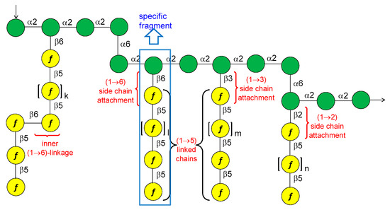 ST2 is one of “nonvaccine serotype”, i.e., not covered by licensed PCVs based on capsular polysaccharides. It is one of the main cause of invasive pneumococcal diseases (IPD) responsible for pneumonia, septicemia, meningitis, and otitis media in many countries in Asia [73] and Central America [74]. The structure of ST2 CPS is composed of a hexasaccharide repeating unit illustrated in Figure 11 [75].