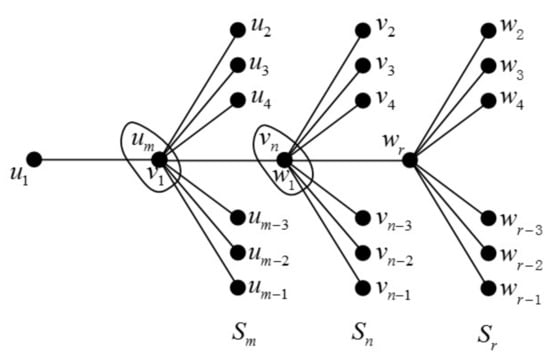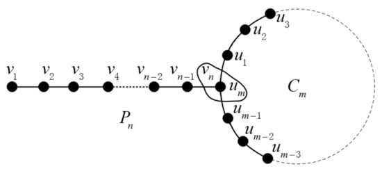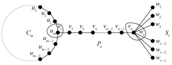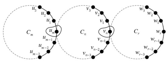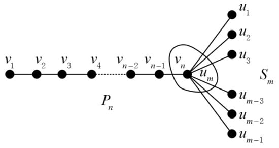 The join graph operation’s definition is given as follows: If we are given two graphs and and two vertices , , the join graph is obtained by merging and into one vertex. The certain join graphs and are illustrated in Figure 4 and Figure 5, respectively.