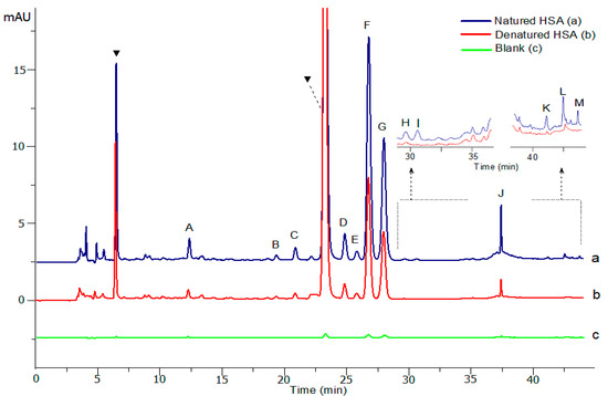 - Anguizola, J.; Debolt, E.; Suresh, D.; Hage, D.S. Chromatographic analysis of the effects of fatty acids and glycation on binding by probes for Sudlow sites I and II to human serum albumin. J. Chromatogr. B Anal. Technol. Biomed. Life Sci. 2016, 1021, 175–181. [Google Scholar] [CrossRef] [PubMed]
