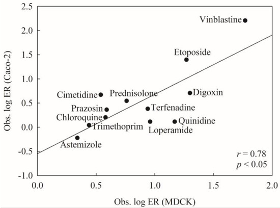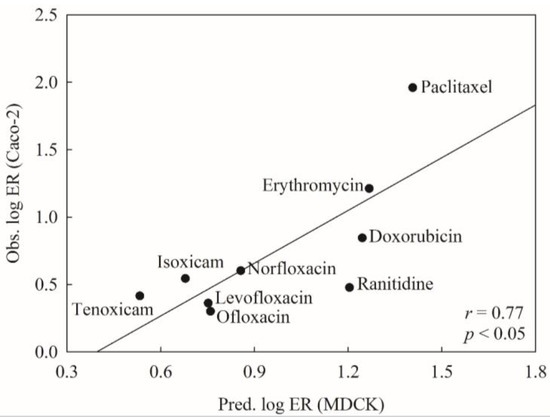 The observed log ER values (Caco-2) vs. the observed log ER values (MDCK).