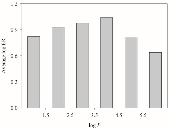 It has been observed that hydrophobicity, which normally can be represented by log P, plays an important role in P-gp–substrate interaction due to the hydrophobic nature of the substrate binding pocket, resulting in stronger P-gp substrate binding for those more hydrophobic substrates [116]. Nevertheless, the interaction between substrates and lipid bilayer as well as the release of substrates into the extracellular environment also depend on the hydrophobicity of substrates (vide supra), leading to a nonlinear relationship between log P and log ER. Figure 7 displays the average log ER for histogram bin of log P for all molecules enlisted in this study. It can be observed that the average log ER initially increased with log P when log P was smaller and decreased with log P when log P became higher. Such observation is qualitatively similar to the trend of Papp (A→B) found by Hitchcock et al. [105].