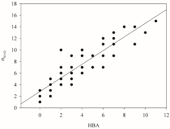 The number of nitrogen and oxygen (nN+O) vs. HBA.