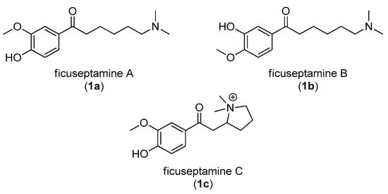 Structures of ficuseptamine A, B, and C (1a–c).