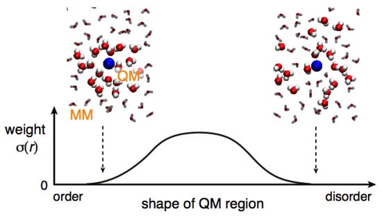 Concept of weight function. The horizontal axis represents a conceptual index related to the degree of disorder of the QM region.