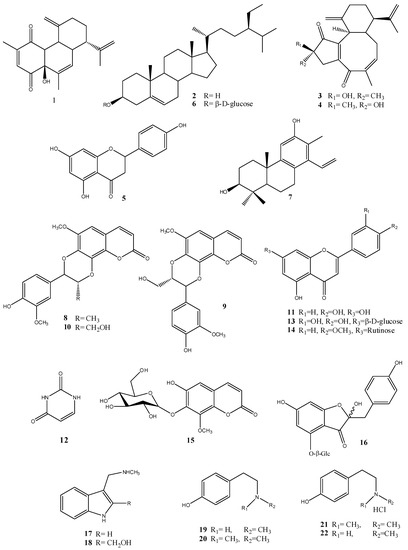 Sample Availability: Samples of the compounds 1–22 are available from the authors. |