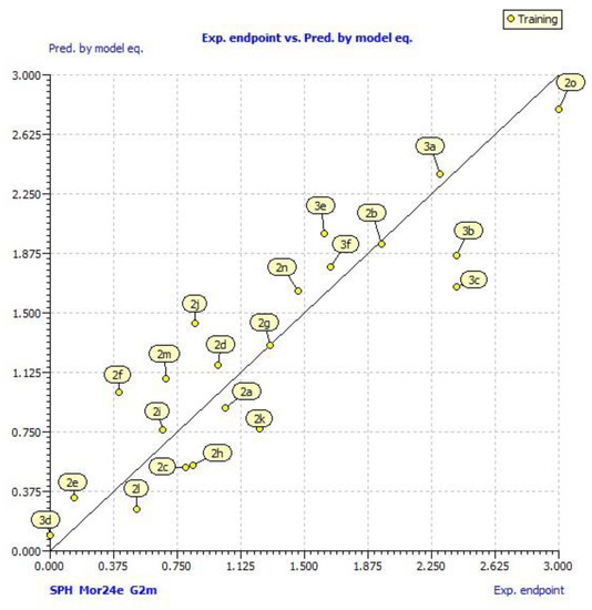 where SPH is a sphericity of molecule; Mor24e is 3D-MoRSE descriptor reflects the contribution of the 3D distribution of Sanderson electronegativity; and G2m is the 2nd component symmetry directional WHIM index.