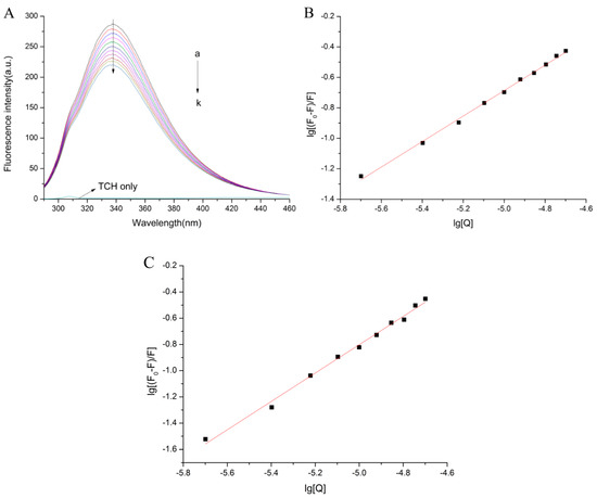 The presented work aimed to investigate whether TCH interacts with bLf and to further confirm the quenching mechanism. In order to confirm the quenching mechanism, we analyzed the fluorescence data by the Stern–Volmer equation at different temperatures (290 K, 300 K, and 310 K). The results were shown in Figure 1C and Table 1.