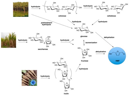 - Yu, I.K.M.; Tsang, D.C.W. Conversion of biomass to hydroxymethylfurfural: A review of catalytic systems and underlying mechanisms. Bioresour. Technol. 2017, 238, 716–732. [Google Scholar] [CrossRef] [PubMed]