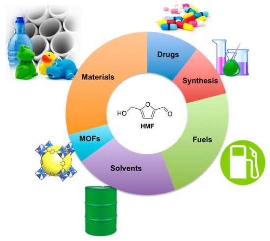 Main domains of practical applications of 5-HMF and its derivatives. MOFs—metal organic frameworks.