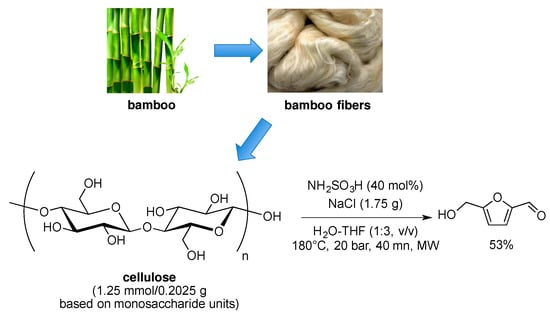 - Sun, J.; Yuan, X.; Shen, Y.; Yi, Y.; Wang, B.; Xu, F.; Sun, R. Conversion of Bamboo fiber into 5-hydroxymethylfurfural catalyzed by sulfamic acid with microwave assistance in biphasic system. Ind. Crops Prod. 2015, 70, 266–271. [Google Scholar] [CrossRef]
