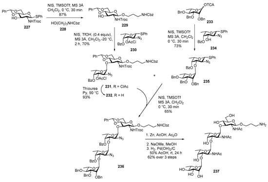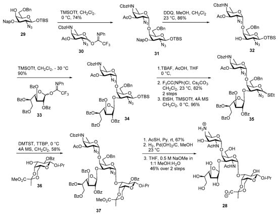 - Pfister, H.B.; Mulard, L.A. Synthesis of the Zwitterionic Repeating Unit of the O-Antigen from Shigella Sonnei and Chain Elongation at Both Ends. Org. Lett. 2014, 16, 4892–4895. [Google Scholar] [CrossRef] [PubMed]