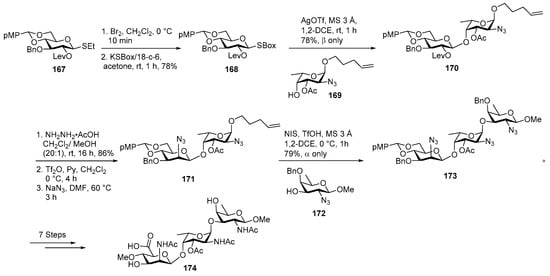 - Sanapala, S.R.; Kulkarni, S.S. Expedient Route to Access Rare Deoxy Amino L-Sugar Building Blocks for the Assembly of Bacterial Glycoconjugates. J. Am. Chem. Soc. 2016, 138, 4938–4947. [Google Scholar] [CrossRef] [PubMed]