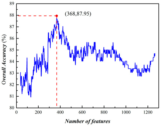 By using the ANOVA method, we have a clear understanding of each feature’s capabilities for the model. Therefore, we don’t have to exhaust all the feature subsets but instead selectively construct feature subsets according to their -values in this paper. The first feature subset contains the feature with the highest -value, . The second feature subset adds the second highest -value to the first subset, . The third feature subset adds the third highest -value to the second subset, . The procedure was repeated until the accuracy of the model no longer increased.