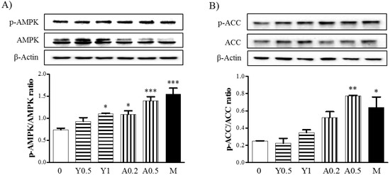 2.3. Effects of Yam Extract and Allantoin on the AMPK and ACC Pathways in Myotubes