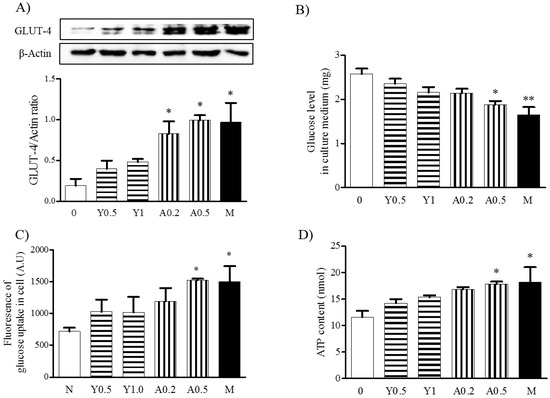 2.5. Effects of Yam Extract and Allantoin on ATP Production in Myotubes