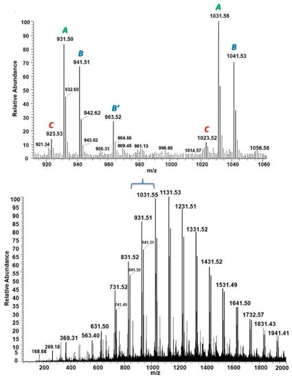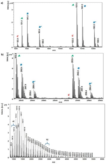 3.4. Matrix Assisted Laser Desorption Ionization (MALDI-TOF-MS)