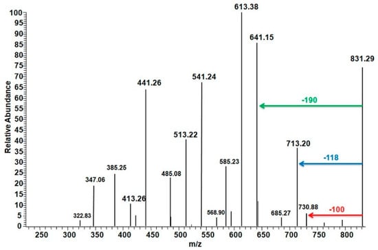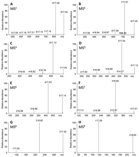 3.3. Electrospray Ionization Mass Spectrometry (ESI-MSn) Analysis