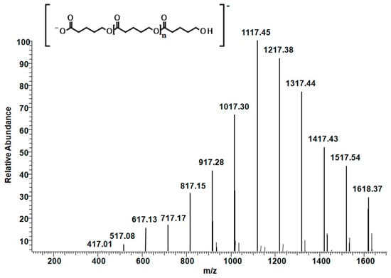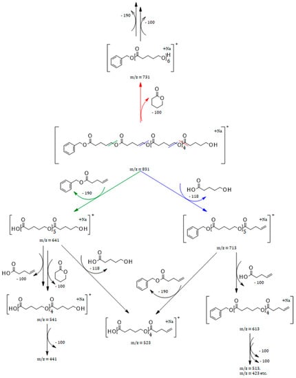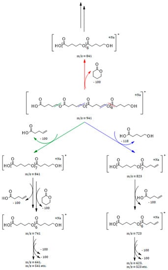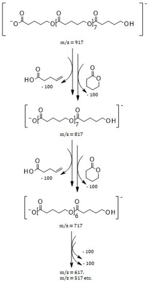 - Adamus, G.; Kwiecień, I.; Maksymiak, M.; Bałakier, T.; Jurczak, J.; Kowalczuk, M. Molecular level structure of novel synthetic analogues of aliphatic biopolyesters as revealed by multistage mass spectrometry. Anal. Chim. Acta 2014, 808, 104–114. [Google Scholar] [CrossRef] [PubMed]