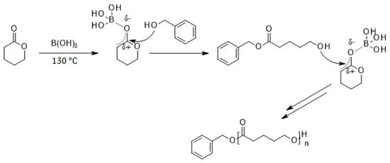 - Ren, Y.; Wei, Z.; Leng, X.; Wang, Y.; Li, Y. Boric acid as biocatalyst for living ring-opening polymerization of ε-caprolactone. Polymer 2015, 78, 51–58. [Google Scholar] [CrossRef]