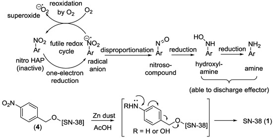 Simplified nitro-HAP-activating process for prodrug 4 (Ar = substituted aromatic ring).