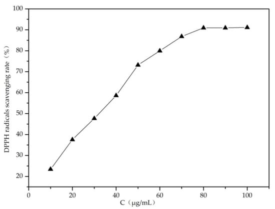 An alcohol solution of DPPH free radicals is purple and has a strong absorption at 517 nm. In the presence of some free radical scavengers, DPPH free radicals will be scavenged, and the absorption gradually decreases. There is a quantitative relationship between absorption and DPPH radical scavenging, so this assay is considered one of the standard methods for the evaluation of antioxidative substances [17].