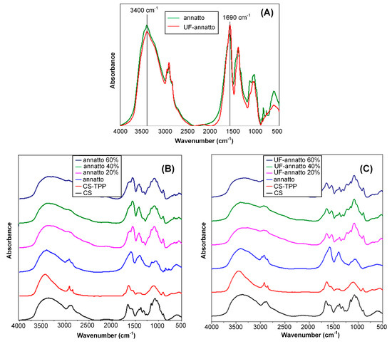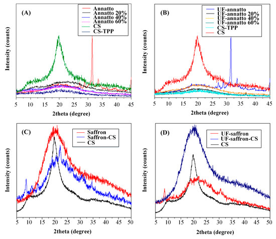Chitosan Nanoparticles with Encapsulated Natural and UF-Purified Annatto and Saffron for the Preparation of UV Protective Cosmetic Emulsions