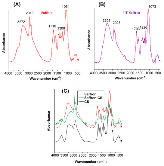 | UF-saffron–CS | 298 ± 8 | 43 ± 3 | 83.75 | 25.61 | 37.50 |