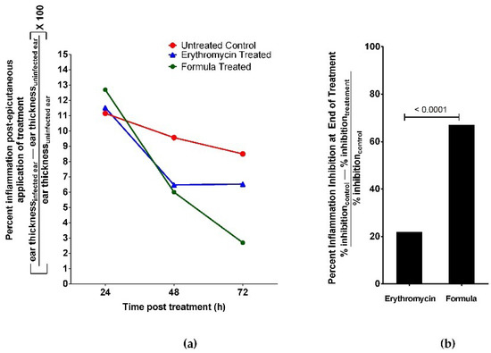 We calculated percent inflammation post epicutaneous application of treatment for all the animal groups using the following formula: