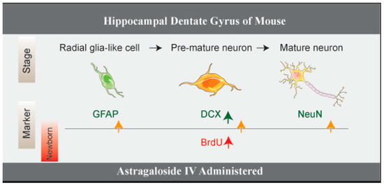 The schematic illustration of the promotive effect of ASI (25 mg/kg) on adult neurogenesis in DGs.