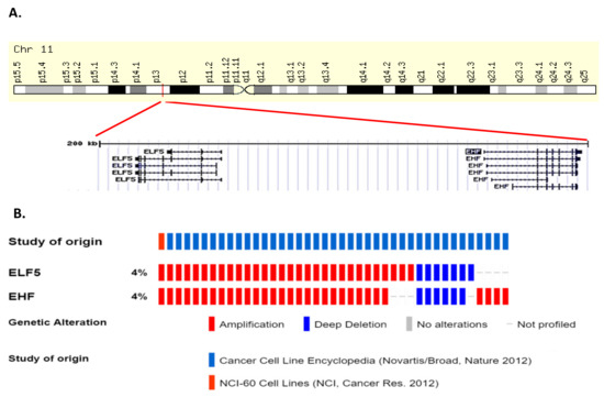 - Shi, J.; Qu, Y.; Li, X.; Sui, F.; Yao, D.; Yang, Q.; Shi, B.; Ji, M.; Hou, P. Increased expression of EHF via gene amplification contributes to the activation of HER family signaling and associates with poor survival in gastric cancer. Cell Death Dis. 2016, 7, e2442. [Google Scholar] [CrossRef] [PubMed]