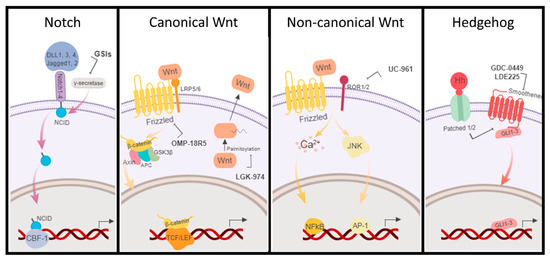 - Takebe, N.; Harris, P.J.; Warren, R.Q.; Ivy, S.P. Targeting cancer stem cells by inhibiting Wnt, Notch, and Hedgehog pathways. Nat. Rev. Clin. Oncol. 2011, 8, 97–106. [Google Scholar] [CrossRef] [PubMed]