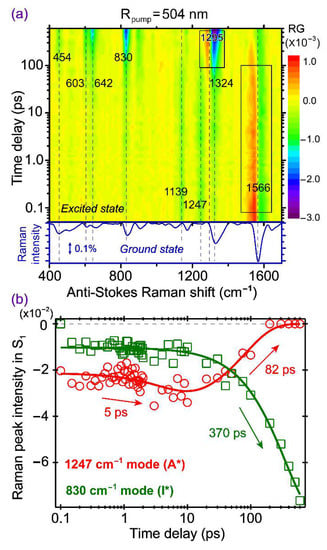 Figure 5b), which indicates that the 539 nm Raman pump with redder Raman probe photons better enhance the deprotonated chromophore species, including those generated on the fs to few ps time scales [