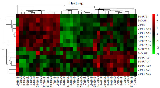 Significant differences of physiological indices between different samples were calculated using a multiple factor analysis of variance with a LSD test (at a significance level of p < 0.05). Repeated measures analysis of variance was used to test for the effects of spinach genotype on gene expression (p < 0.05). The data are expressed as the mean and the standard deviation (mean ± SD, n = 3). The relationship between nitrate content and gene expression was determined using the Pearson’s correlation analysis. Statistical calculations were performed using SPSS software version 13.0 (IBM, New York, NY, USA).