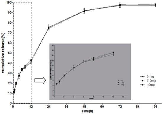 Effect of drug loading on the MH release behaviour. Inserted panel shows the in vitro release profiles in the first 12 h. Data are presented as mean ± SD (n = 3).