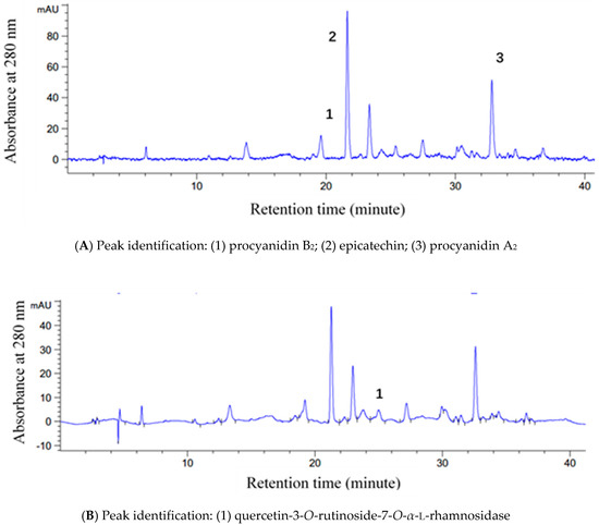 Quercetin-3-O-rutinoside-7-O-α-l-rhamnosidase (QRR) was prepared in the laboratory [30]. Procyanidin A2 and procyanidin B2 were purchased from ChromaDex (Irvine, CA, USA). Epicatechin, gallic acid, quercetin, vanillin, Folin-Ciocalteu reagent, 6-hydroxy-2,5,7,8-tetramethylchroman-2-carboxylic acid (Trolox), fluorescein sodium, 2′,7′-dichlorofluorescin diacetate (DCFH-DA), and 2,2′-azobis (2-amidinopropane) dihydrochloride (AAPH) were obtained from Sigma-Aldrich, Inc. (St. Louis, MO, USA). HPLC-grade glacial acetic acid, acetonitrile, and methanol were obtained from Thermo Fisher Scientific (Suwanee, GA, USA). DMEM(H) medium, new bovine calf serum and Hank’s balanced salt solution (HBSS) were purchased from Gibco Life Technologies (Grand Island, NY, USA). All other reagents were of analytical grade. HepG2 human liver cancer cells were obtained from the American Type Culture Collection (Rockville, MD, USA).