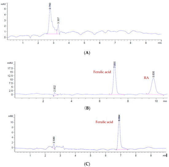 - Baba, S.; Osakabe, N.; Natsume, M.; Terao, J. Orally administered rosmarinic acid is present as the conjugated and/or methylated forms in plasma, and is degraded and metabolized to conjugated forms of caffeic acid, ferulic acid and m-coumaric acid. Life Sci. 2004, 5, 165–178. [Google Scholar] [CrossRef] [PubMed]