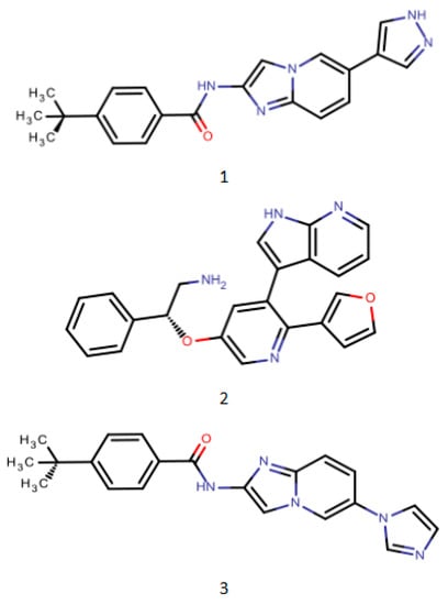 - Starosyla, S.A.; Volynets, G.P.; Bdzhola, V.G.; Golub, A.G.; Protopopov, M.V.; Yarmoluk, S.M. Ask1 pharmacophore model derived from diverse classes of inhibitors. Bioorg. Med. Chem. Lett. 2014, 24, 4418–4423. [Google Scholar] [CrossRef] [PubMed]