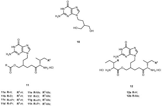 - Kim, D.-K.; Lee, N.; Im, G.J.; Kim, Y.-G.; Chang, K.; Kim, H.-T.; Cho, Y.-G.; Choi, W.-S.; Jung, I.; Kim, K.H. Synthesis and evaluation of amino acid ester prodrugs of penciclovir. Bioorg. Med. Chem. Lett. 1996, 6, 1849–1854. [Google Scholar] [CrossRef]